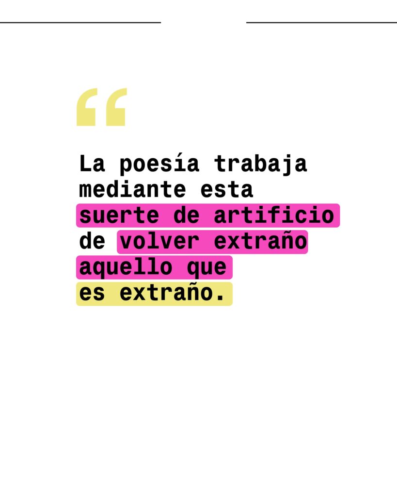 ELENA: Es una clave, sí. Es una forma de pensar, de abordar el mundo, las estructuras. Incluso de provincia a provincia, entre pueblos hispanohablantes hay maneras, hay cadencias, hay formas de conectar con ese mismo idioma también. La poesía tiene un anclaje particularmente más en el habla quizá, ¿no? En la forma en que uno está conectado con su propia habla, con su propia musicalidad, con su propia forma de entender las palabras. Y cuánta profundidad tiene en el manejo de las palabras también. Cuánto puede desentrañar de su propia poesía. Cuánto puede corregir en eso que ofrece a un lector.
